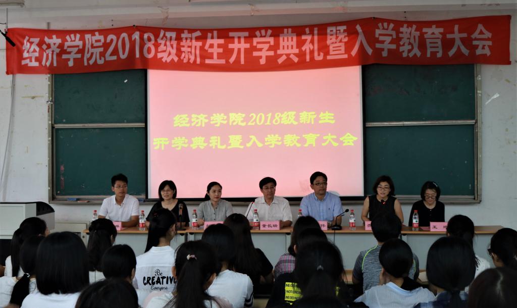(通讯员:杨晓� 孙俏俏)9�13日下�16:00,经济学�2018级新生开学典礼暨入学教育大会于圣井校区敏行楼B5201举行。院长董长瑞,党委书记姜伟,副院长彭留英、齐杨,院团委正科级辅导员王琦、辅导员朱海林以及教师代表徐小恒出席会议�2018级全体新生到场参加,会议由齐杨主持�