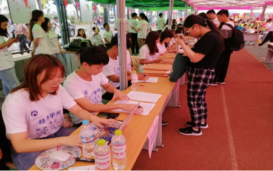 迎新现场学院文化宣传创意新颖,“欢迎你,经院的小孩”合影人形板、山财大经济学院学生证合影板,让每位“财子”“佳人”记录下与经济学院邂逅最初的美好;“我爱经济学院”签名墙也为2019级萌新留下属于他们的第一个“经济印记”。分管我们学院的校领导车滨应邀在签名墙签上自己的名字�