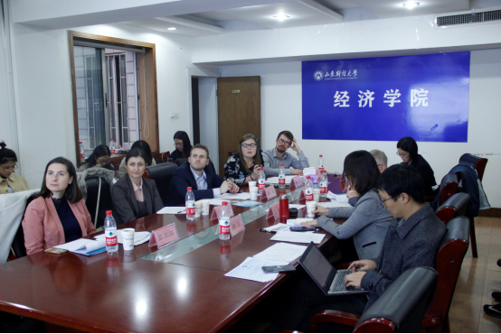 11�23日,“第五届中国-中东欧经济论坛(2019)”在山东财经大学舜耕校区顺利举行。本论坛开幕式由刘建旭副教授主持,学院副院长王传荣教授和捷克布拉格经济大学Mr.Dominik Proch分别致辞。王传荣教授代表我院对论坛的召开表示热烈祝贺,对捷克布拉格经济大学各位学者的来访表示诚挚的欢迎,并预祝论坛取得圆满成功。捷克布拉格经济大学Mr.Dominik Proch在致辞中充分肯定了两院校多年的学术交流和取得的丰硕果实。来自捷克布拉格经济大学的Miss.Jankovič Vukica, Miss.Smela Monika, MissStehlikova Jana, Mr.Valik Lubos�5位学者、加拿大达尔豪斯大学 Melvin 教授,北京外国语大学博士生以及我院国际交流合作部教师和经济学国际班学生参加论坛�
