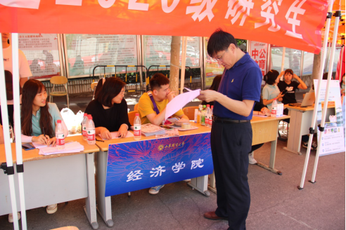 学校及学院领导高度重视研究生迎新工作,校领导亲临经济学院迎新现场指导工作。校长赵忠秀关切地询问新生的报到情况,仔细参观了学院的迎新宣传板;院长董长瑞认真地指导各项迎新工作,耐心地为新生答疑解惑�
