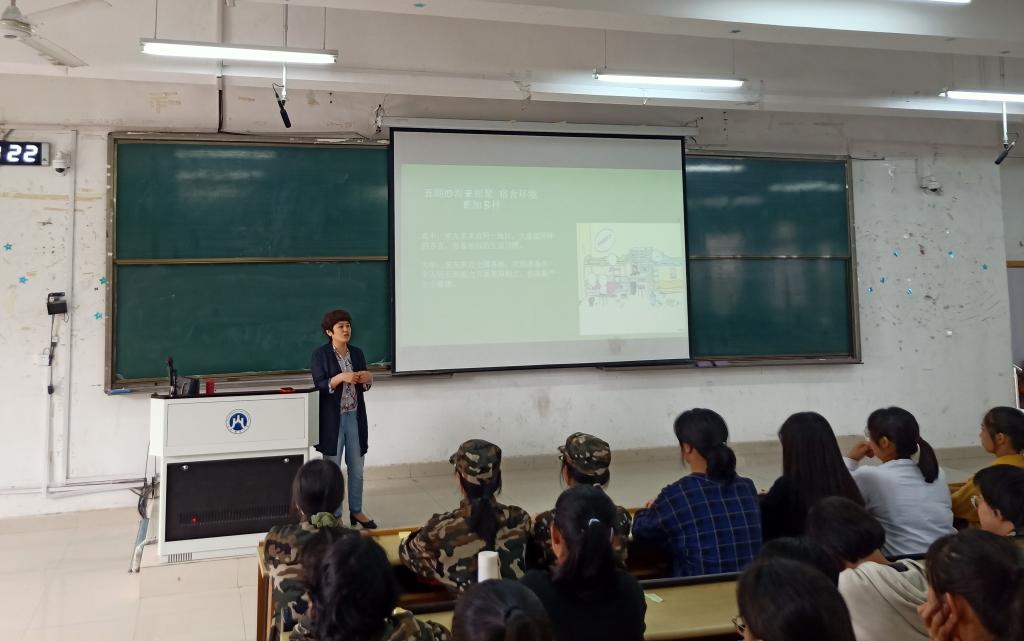 高丽以讲述新冠疫情形势下2020年的特别之处开场,她向同学们介绍大学如何处理好宿舍关系、改变学习模式、支配自由时间和规划生活消费等,提倡同学们要有共情能力,学会感受他人的感受,从点滴小事中传递温暖,享受大学丰富的教育教学资源,为理想积极奋斗。她针对部分大一新生感到迷茫的现象,建议同学们要学会扬长避短,深入研究专业技能,有选择性地参与活动,学会独立,学会适应社会,勇于展现自我。她向新生介绍了心理学和心理咨询的一般知识,分析大学生心理健康教育工作调查问卷结构,详细讲解了心理咨询的流程,介绍了学校心理咨询中心的具体情况,包括组织结构、职责、负责教师、预约方式以及举办的特色活动等�