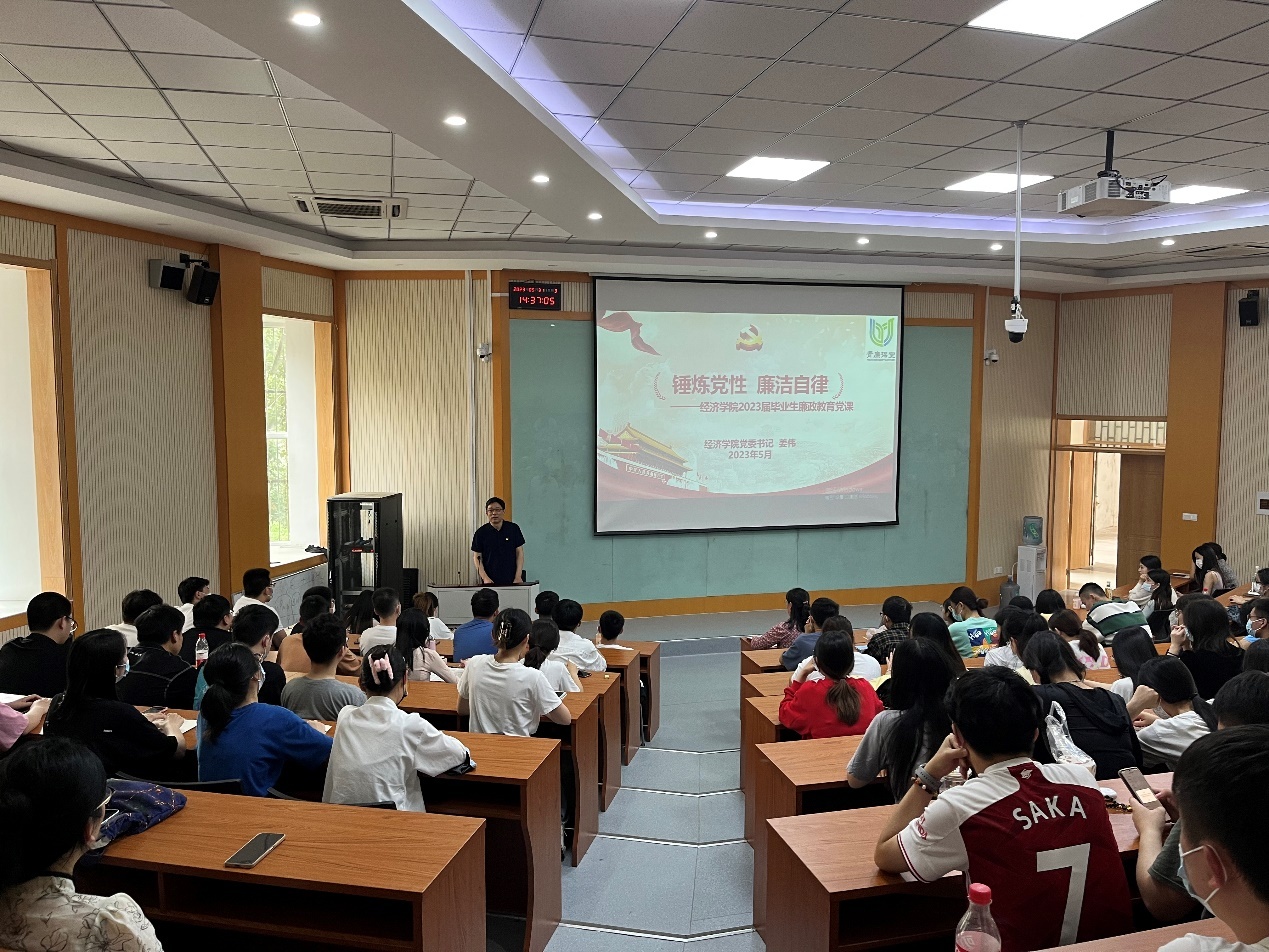 为深入学习党的二十大精神,推动学习贯彻习近平新时代中国特色社会主义思想主题教育走深走实,准确把握“学思想、强党性、重实践、建新功”的总要求,5�31日下午,经济学院党委书记姜伟为毕业生党员作“锤炼党� 廉洁自律”专题党课。学院党委副书记陈静、辅导员裴斐、党委专职组织员王琦出席会议,经济学院全体毕业生党员参加会议�