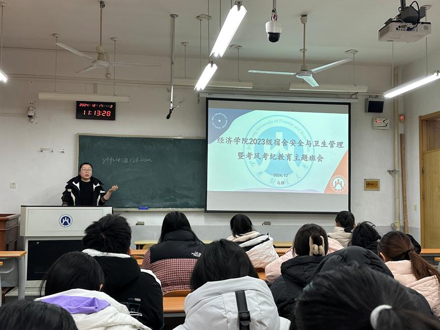 (通讯员:刘文畅) 为夯实学院学风根基,严肃考风考纪,筑牢安全防线,营造优良的学习氛围,加强学生安全教育与管理,确保学期末各项工作顺利进行�2024�12�9日至12�17日,经济学院各班级召开期末学风考风暨卫生安全教育主题班会,辅导员及全体学生参加主题班会�