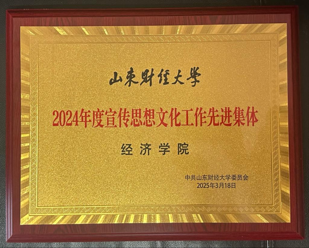 近日,山东财经大学宣传思想文化工作会议召开,经济学院荣�2024年学校宣传思想文化工作先进集体�