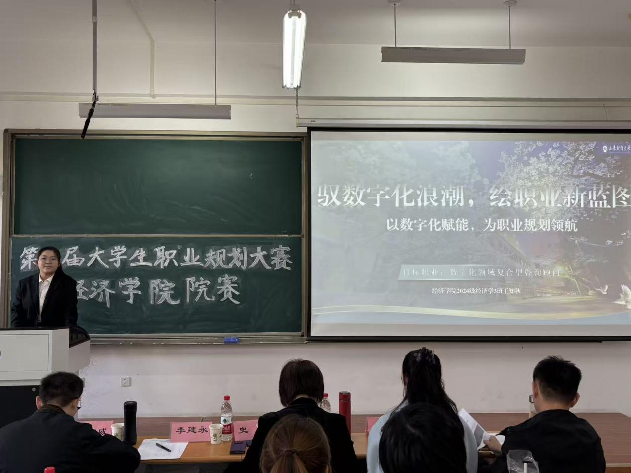 参赛选手们在阐述职业规划路径时紧扣主题,结合经济数据、可视化图表等方式流畅叙述。面对评委提问,我院学子从容拆解疑问,既展现专业素养,又流露对未来职业的热忱,将对生涯的规划与思考化作一场场生动且有力的表达。选手答辩结束后,评委老师对本次比赛各位选手的表现逐一进行了点评�