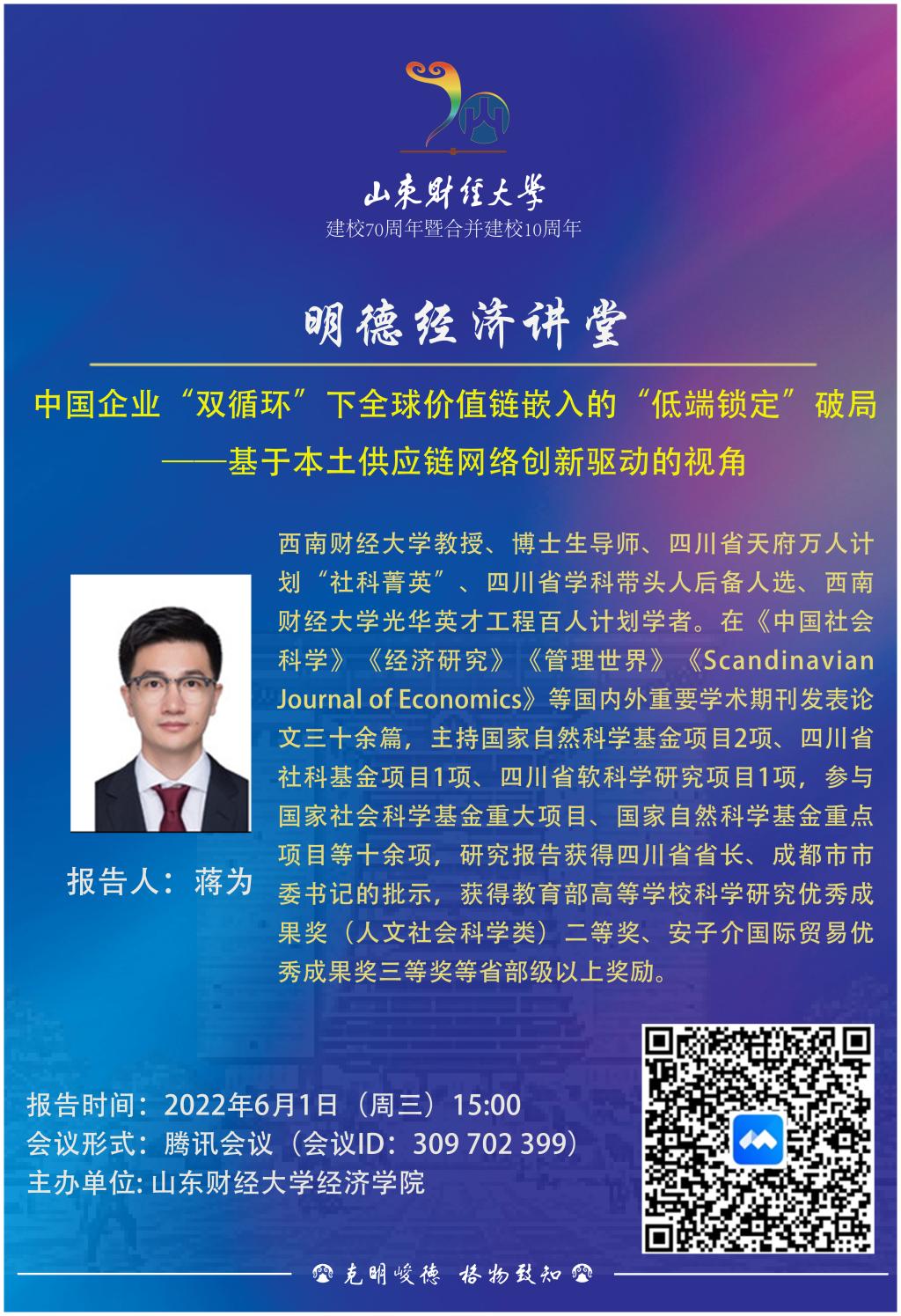 明德经济讲堂:中国企业“双循环”下全球价值链嵌入的“低端锁定”破局——基于本土供应链网络创新驱动的视�-山东财经大学经济学院 <#webadvjs#>