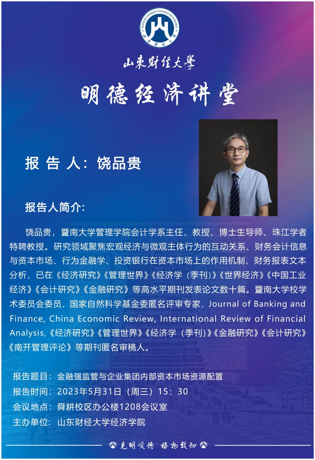 山东财经大学明德经济讲堂:金融强监管与企业集团内部资本市场资源配�-山东财经大学经济学院 <#webadvjs#>