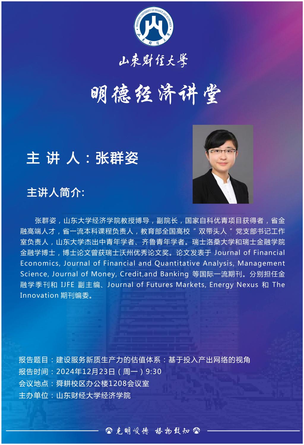 山东财经大学明德经济讲堂:建设服务新质生产力的估值体系:基于投入产出网络的视�