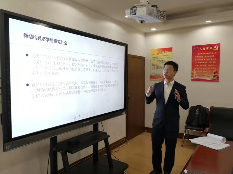 杨子荣博士围绕“新结构经济学理论介绍与研究展望”这一主题,从它的研究目的、理论基础以及有效产业政策重要性三个方面全面阐述了新结构经济学。首先,杨子荣博士通过介绍林毅夫教授的相关事迹以及前六代知识分子在中国历史进程中起到的作用,向作为第七代知识分子的我们解释了做经济学研究的重要意义;随后,杨子荣博士提出我国经济发展中存在的几个问题引出新结构经济学的研究目的、内涵和理论基础;通过讲解林毅夫与张维迎、林毅夫和田国强关于产业政策的论战,杨子荣博士提出追赶阶段产业升级需要多样化的产业政策支撑,并且结合“安定土豆”的案例说明了有为政府与产业政策会促进经济增长;最后,杨子荣博士介绍了失掉比较优势产业的退出型产业政策与国防安全型战略产业的产业政策,由此向全体师生展示了新结构经济学体系的整体框架�