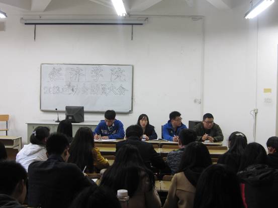 4�24日�26日,经济学院分别于舜耕、圣井校区召开2013年校春季运动会动员大会,团总支辅导员付雯老师及学生会主席团成员出席本次会议,我院全体运动员、啦啦操队员,以及学生会成员到场参加�