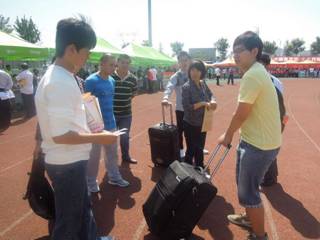 14号下午,我院迎来了迎新工作的阵阵高潮,一批又一批新生和家长来到学校。接站人员热情的帮新生们提行李,抵达报到处后,志愿者们不厌其烦地为新生讲解报到流程并指导他们完成报到;在家长接待处,工作人员为随行家长端茶倒水,并不断向他们介绍学院有关情况;在引导新生入住组,工作人员不辞辛苦帮新生将行李搬至宿舍�