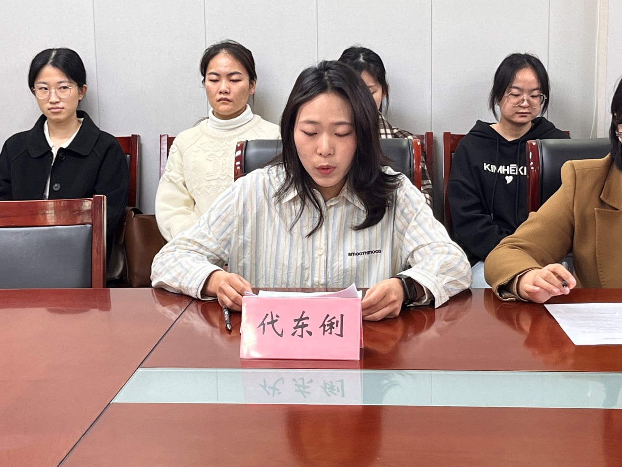 代东俐代表第十二届研究生会作述职报告,总结过去一学年研会工作的亮点和特色,并对第十三届研究生会工作提出建议,第十三届研究生会主席董亚萍代表第十三届研究生会发言�