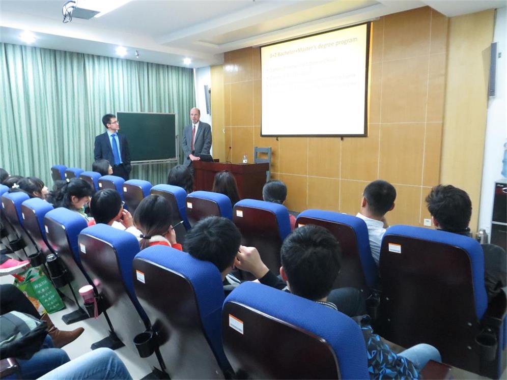 Mark Severson教授首先向大家详细介�纽约州立大学布法罗州立大学的专业、学位设置,发展状况,本科生和研究生培养的课程体系、模式与特色,以及布法罗州立的地理位置和校园风光,并全面细致讲解与我院合作的�3+2留学项目相关事宜。随后,他重点介绍了经济和金融部门、应用经济学的硕士项�,课程设置及师生培养方式�