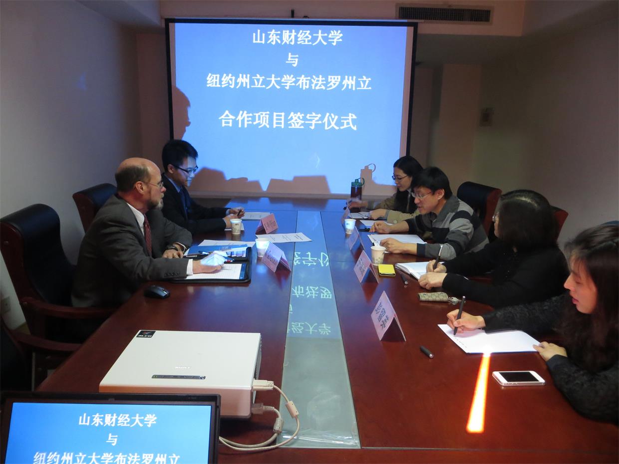 山东财经大学与纽约州立大学布法罗州立分校有良好的合作基础,合作协议的签署预示了双方将在更高水平、更高层次上展开国际教育双向、双赢的交流与合作,扩大两校的国际影响力,增进双方了解,创造新的发展契机,同时,为两校师生出国深造,丰富学术背景和生活经历,提高自身综合素质提供途径�