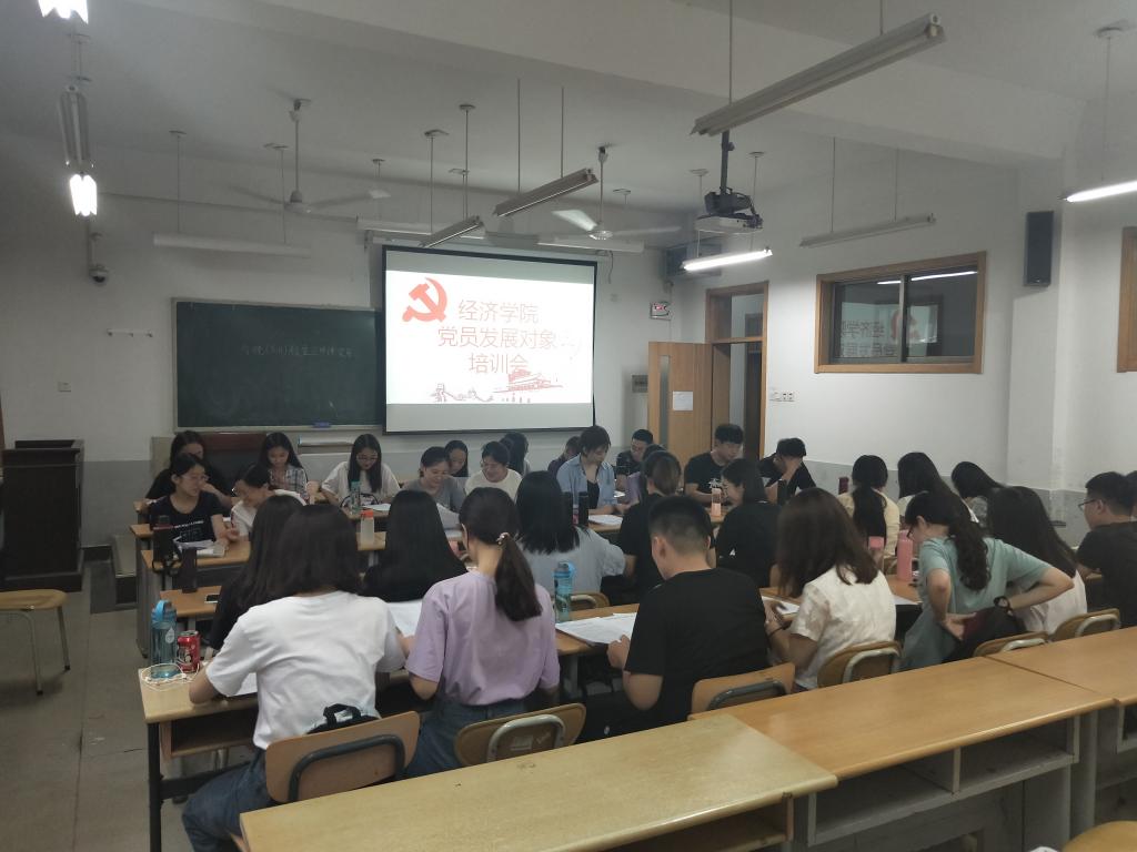 (通讯员李冰封)为深入贯彻落实党的十九大精神和习近平新时代中国特色社会主义思想,按照《中国共产党发展党员工作细则》、《党章》的有关规定,切实加强对发展对象的教育培养工作,保证新发展的党员质量,经济学院于2019�6�10日至13日举办党员发展对象培训,本次培训对象为各支部确定的党员发展对象,共计41人�