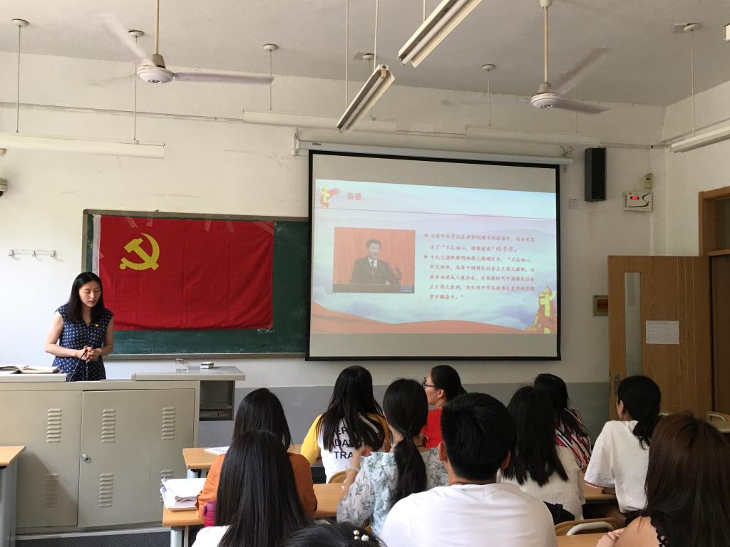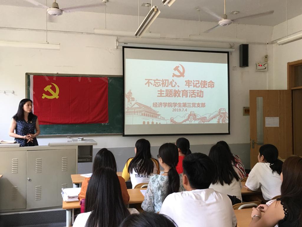 (通讯员:付雯�7�4日,经济学院副院长彭留英在舜耕校�1号教学楼为学生第三党支部上“不忘初心,牢记使命”主题教育党课�