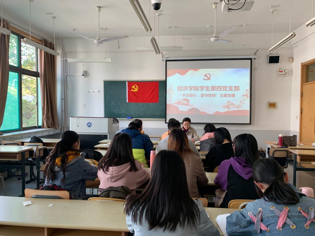 (通讯� 李春�)10�30日下午,经济学院副院长齐杨以“不忘初心、坚守信仰”为主题,在舜耕校�1310教室为学生第四党支部讲专题党课。学生第四党支部书记王琦主持党课�