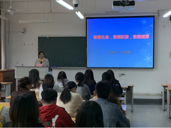 11�1日下午,经济学院党委副书记仵颖涛在舜耕校�3302教室对经济学�2019级全体研究生开展“敬畏生命,敬畏职责,敬畏规章”主题教育,全体同学通过观看电影《中国机长》深化主题教育�