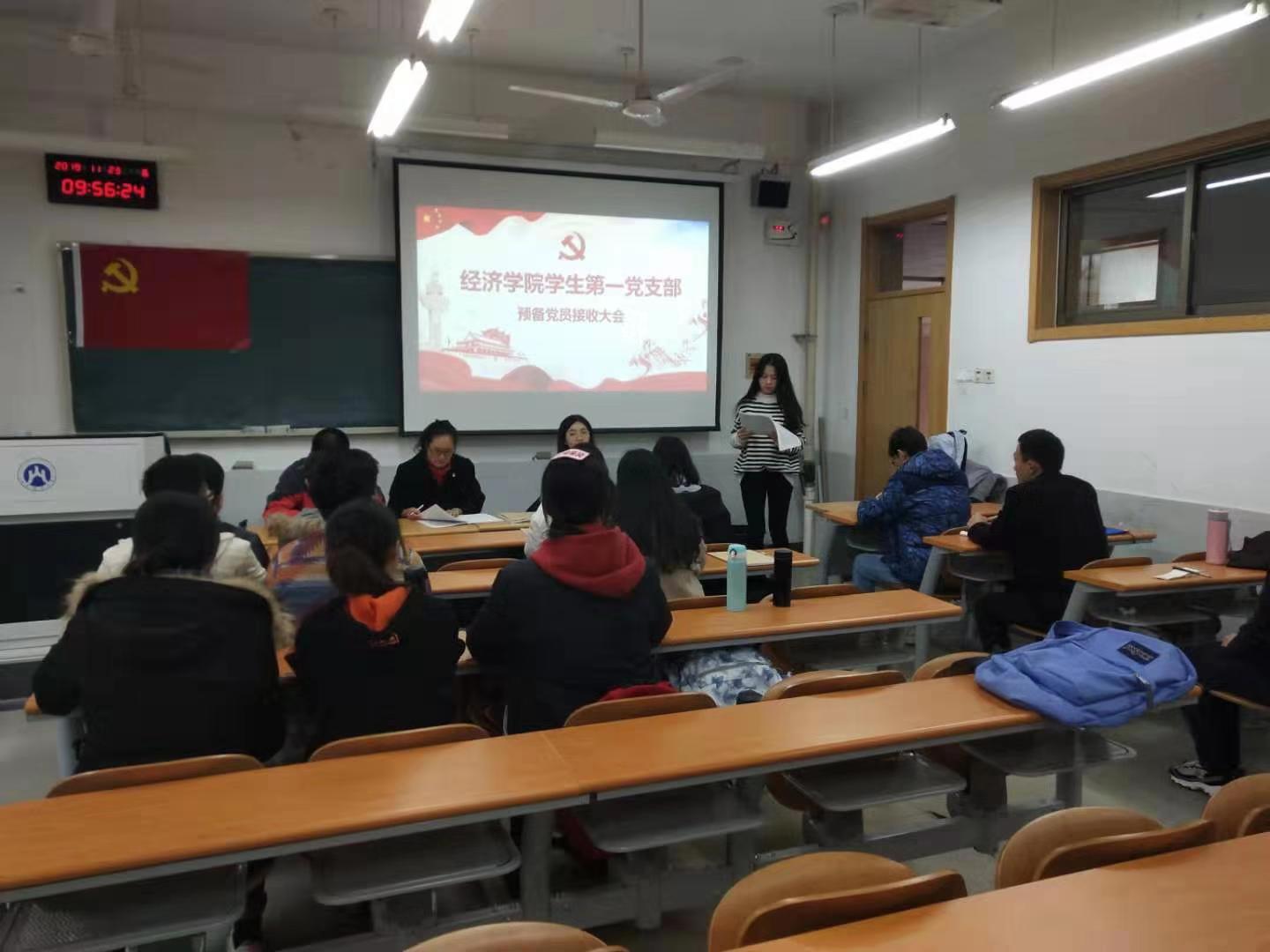 (通讯员李冰封孙俏俏)2019�11�23日—�24日,经济学院7个学生党支部于舜耕校区召开接受预备党员支部大会。各支部书记主持会议,全体党员及本批发展对象参加会议�