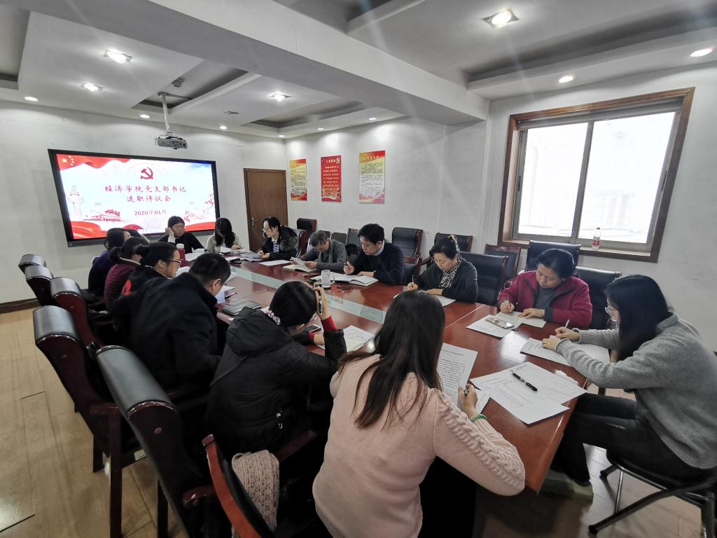 (通讯� 李冰封)为深入学习贯彻习近平新时代中国特色社会主义思想,进一步压实基层党支部书记履行全面从严治党第一责任人责任,经济学院召开2019年度党支部书记履行全面从严治党责任和抓基层党建述职评议会议。会议由党委副书记高峰主持,党委书记姜伟、副书记仵颖涛、副院长彭留英,全体党支部书记参加了会议�