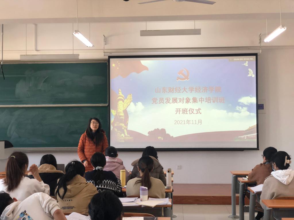 (通讯员:李冰封、冯源)为深入学习贯彻习近平新时代中国特色社会主义思想,切实加强对发展对象的教育和培养,保证新发展党员的质量,按照学校党委组织部要求,经济学院分党校于2021�11�30日在舜耕校�1301教室、圣井校�7号楼7408教室举行经济学院�23期党员发展对象集中培训班开班仪式。党委副书记高峰、李冰封出席开班仪式并作开班讲话,130名新一批党员发展对象参加开班仪式,开班仪式由党委专职组织员王琦主持�