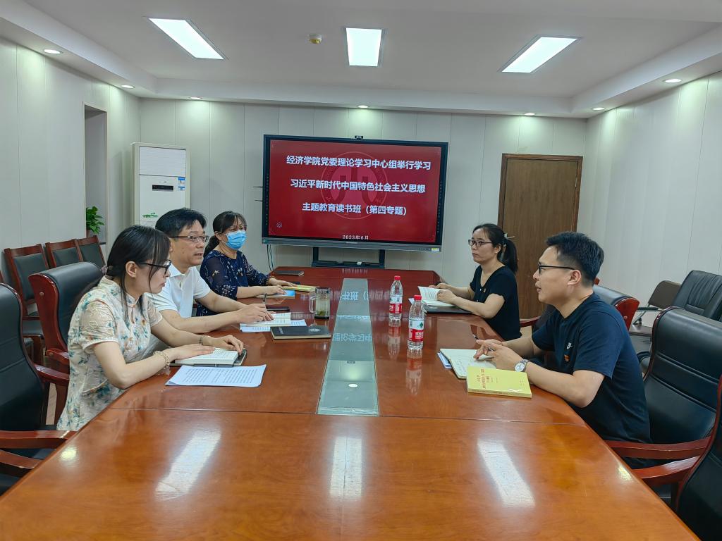 6�8日�9日,经济学院党委理论学习中心组主题教育读书班以“正确理解和大力推进中国式现代化”为专题进行第四次集体学习,重点系统学习了《习近平新时代中国特色社会主义思想学习纲要》一书和5�29日习近平总书记在中共中央政治局第五次集体学习时关于教育强国建设的重要论述。校主题教育工作办公室刘思峰、李亚列会指导。读书班由党委书记姜伟主持,全体班子成员参加学习�