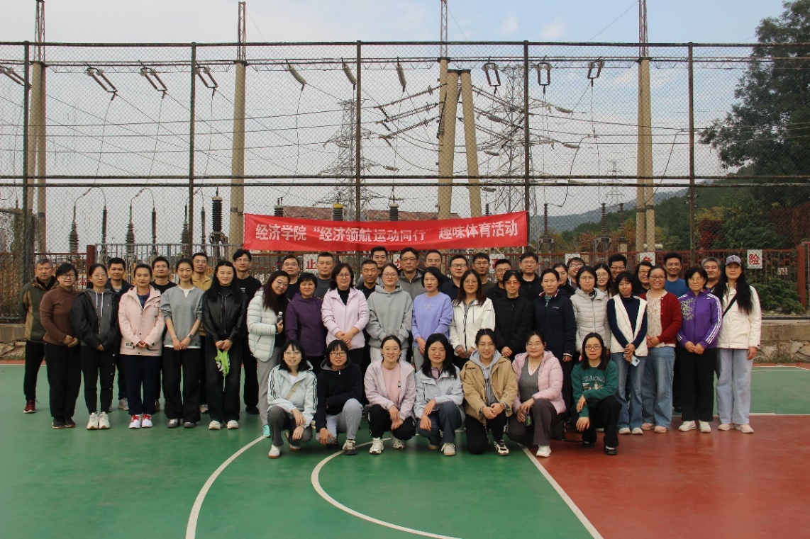 11�6日,经济学院在舜耕校区篮球场举办“经济领� 运动同行”教职工趣味运动会。本次运动会分为个人和团体项目,踢毽子、跳绳、篮球投准、足球射门等个人项目考验技巧与耐力,跳大绳、砥砺前行、扇面跑、企鹅漫步等团体项目聚焦协作与默契�