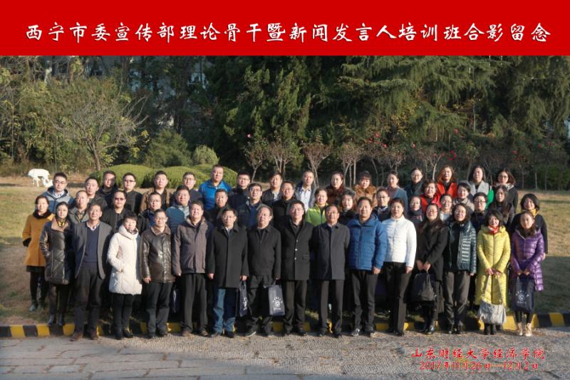 为适应新形势要求,进一步推进西宁市理论宣传与新媒体工作,提高工作人员的业务水平和综合素质,2017�11�26日�12�2日由山东财经大学经济学院承办的“西宁市2017年理论宣传骨干暨新闻发言人培训班”在青岛顺利举办。来自西宁市各机关单位、镇街区�49位宣传干部参加了培训�