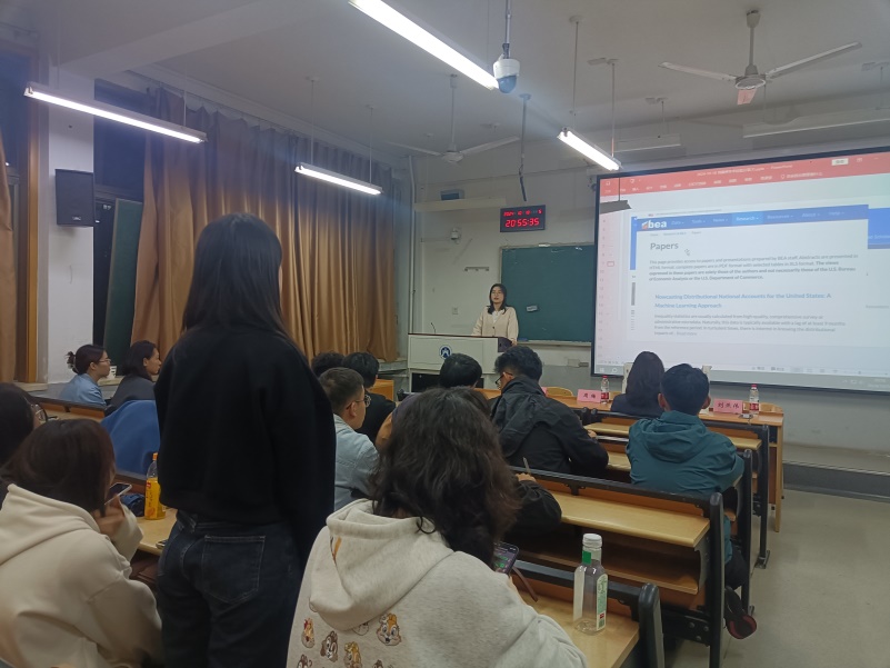 刘燕伟根据自己的科研经验,向同学们讲解了通过各种资源库与软件工具查找文献、阅读文献、整理文献等科研方法。她推荐了多种英文文献检索网站,如Web of Science、谷歌学术等;还介绍了多种常用的文献管理工具,如Zotero、Endnote等。她指出,在论文的选题与写作时要合理使用计量模型,可以通过国家数据网站、中国统计年鉴等途径搜集模型建立所需要的数据�