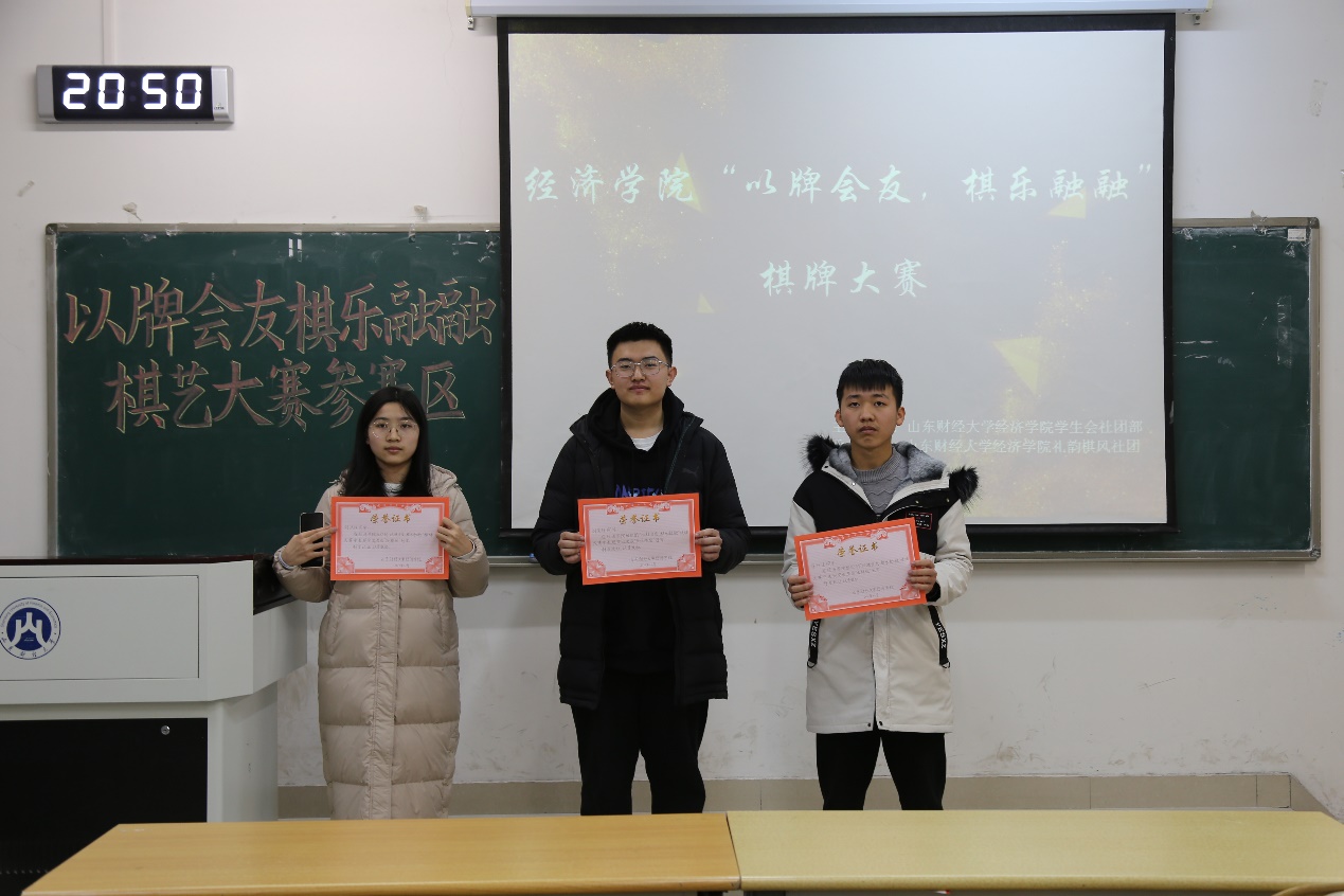 最终,经过三个小时初赛、复赛的多轮筛选,层层角逐,2020级经济学实验班符仕佳同学获得象棋组冠军;2019级会计学4班刘洪梅同学获得跳棋组冠军;2020级统计学(中加)2班刘奕轩同学获得五子棋组冠军�