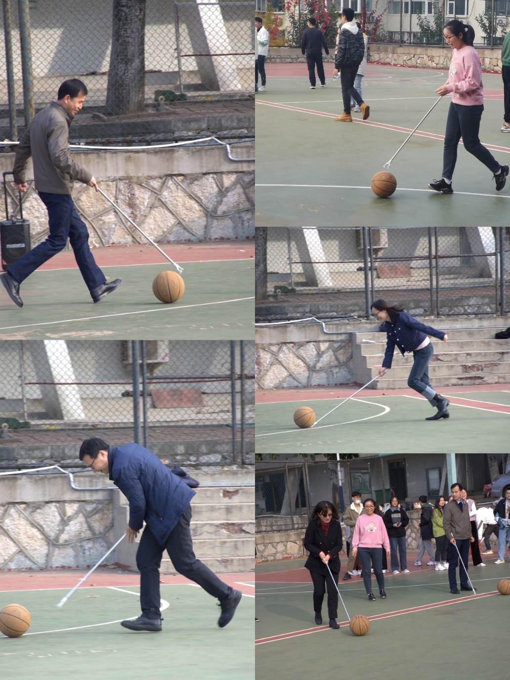 五人六足为多人协作比拼。将相邻成员的左右腿绑住进行折返赛跑,队员们在默契配合中安全迅速地完成比赛�