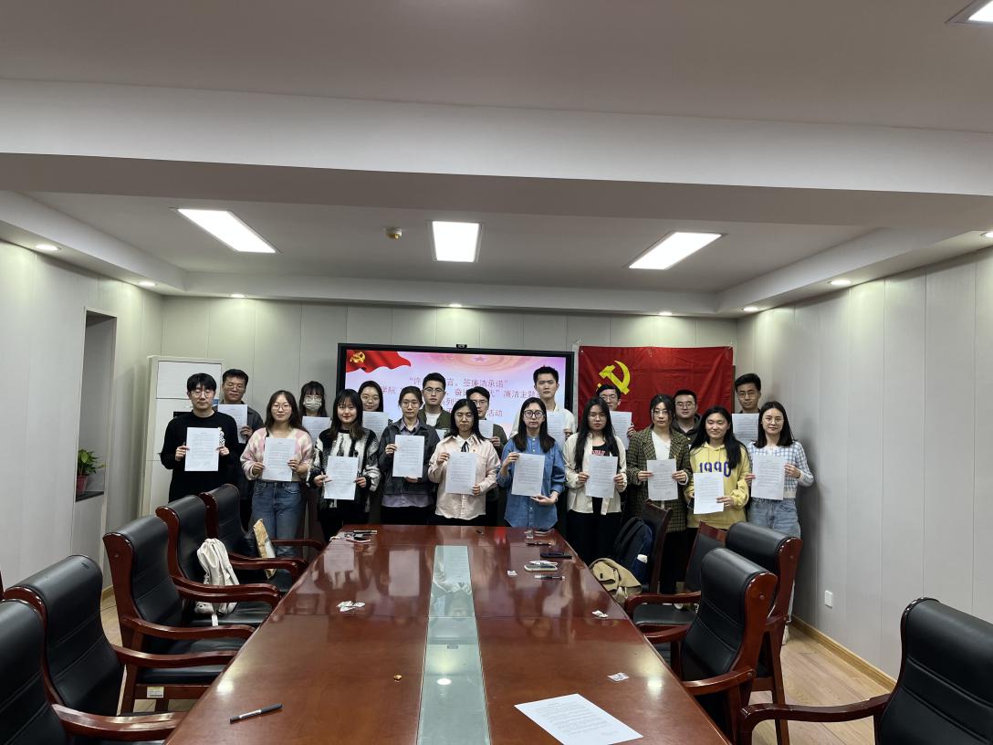 三、“许庄重誓言,签廉洁承诺”承诺书签订活动�为强化党员干部廉洁自律意识,优化工作学习作风�3�9日,在舜耕办公楼1208,研究生党员朗读并签订廉洁承诺书,廉洁承诺书是以《中国共产党廉洁自律准则》为指导,从政治坚定,维护大局,坚定信念忠于党、忠于祖国、忠于人民等方面引导党员自觉遵守规定。此活动旨在号召同学们主动学习并遵守承诺书各项内容,自觉接受监督。活动过程中,同学们纷纷签名践诺,表示将切实履行廉洁自律承诺,筑牢廉洁防线,守牢法纪底线,锤炼担当品格,坚决做到知敬畏、存戒惧、守底线,树廉洁榜样,做合格党员�