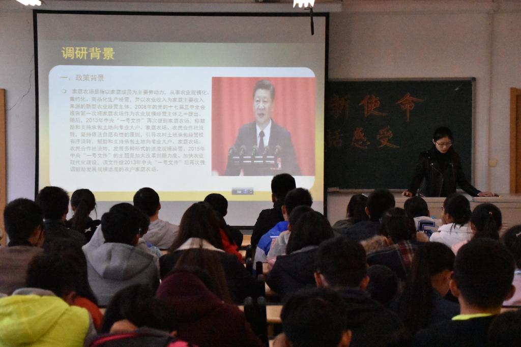 三位实践调研团队负责人分享了调研经验和心得。“济南市家庭农场经营模式及其优化”团队负责人付雅云介绍了团队成员结合国家加快农业现代化建设的政策背景,对家庭农场基本营销模式和发展特点的调研情况。张乐和杨家超重点介绍了实践调研的前期立项和调研方法的选择问题�